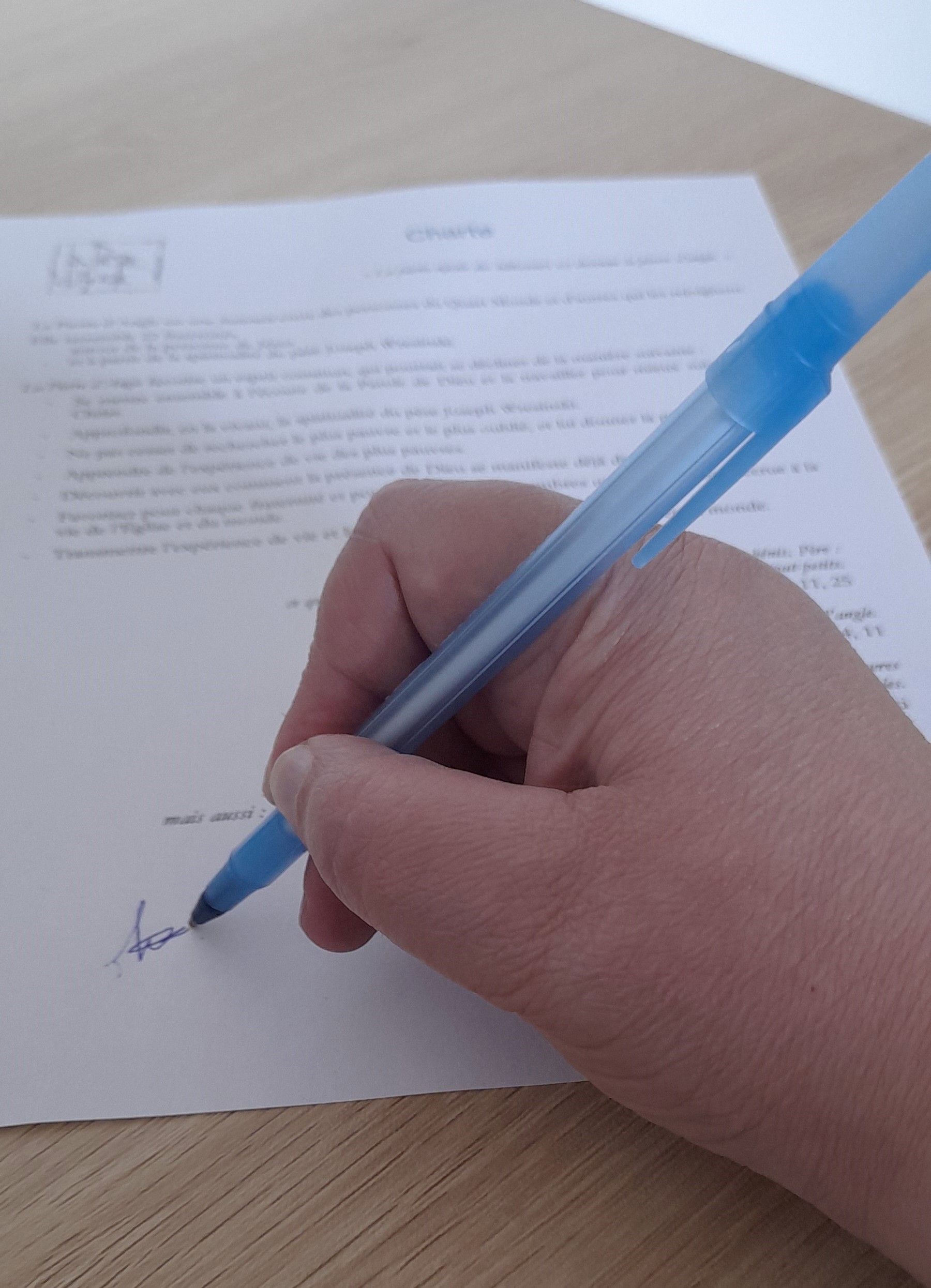 Chaque année, les membres des différentes fraternités sont invités à adhérer à La Pierre d’Angle et à signer symboliquement cette charte.
