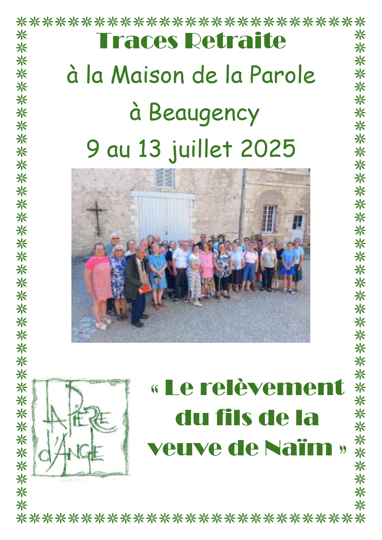 Retraite de La Pierre d’Angle à la Maison de la Parole de Beaugency du 9 au 13 juillet 2025