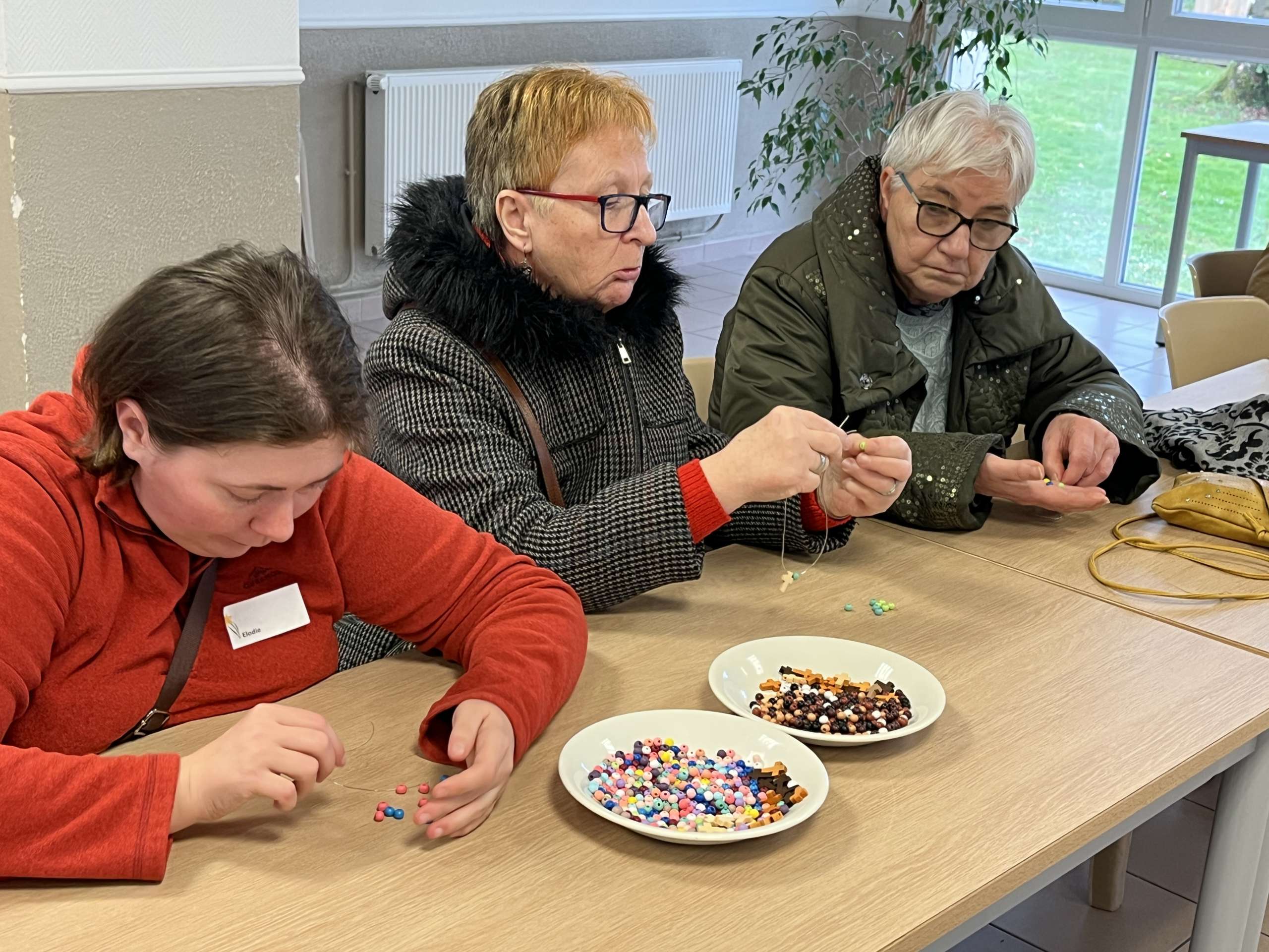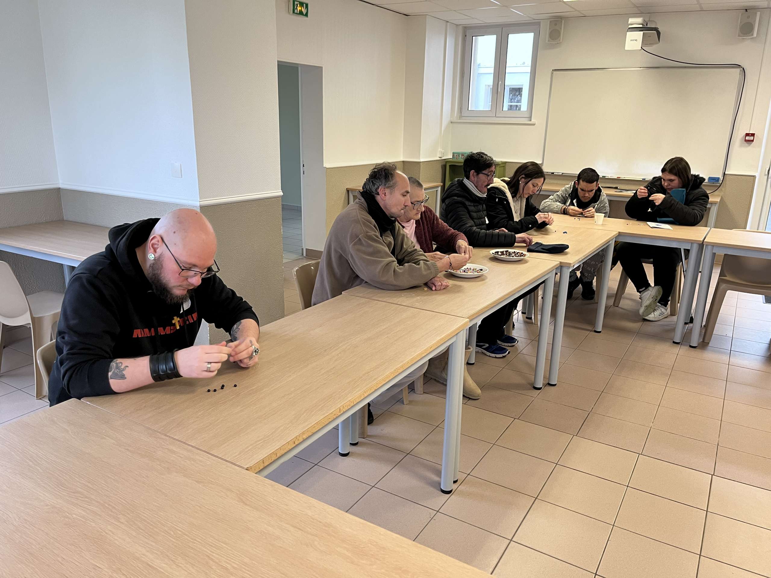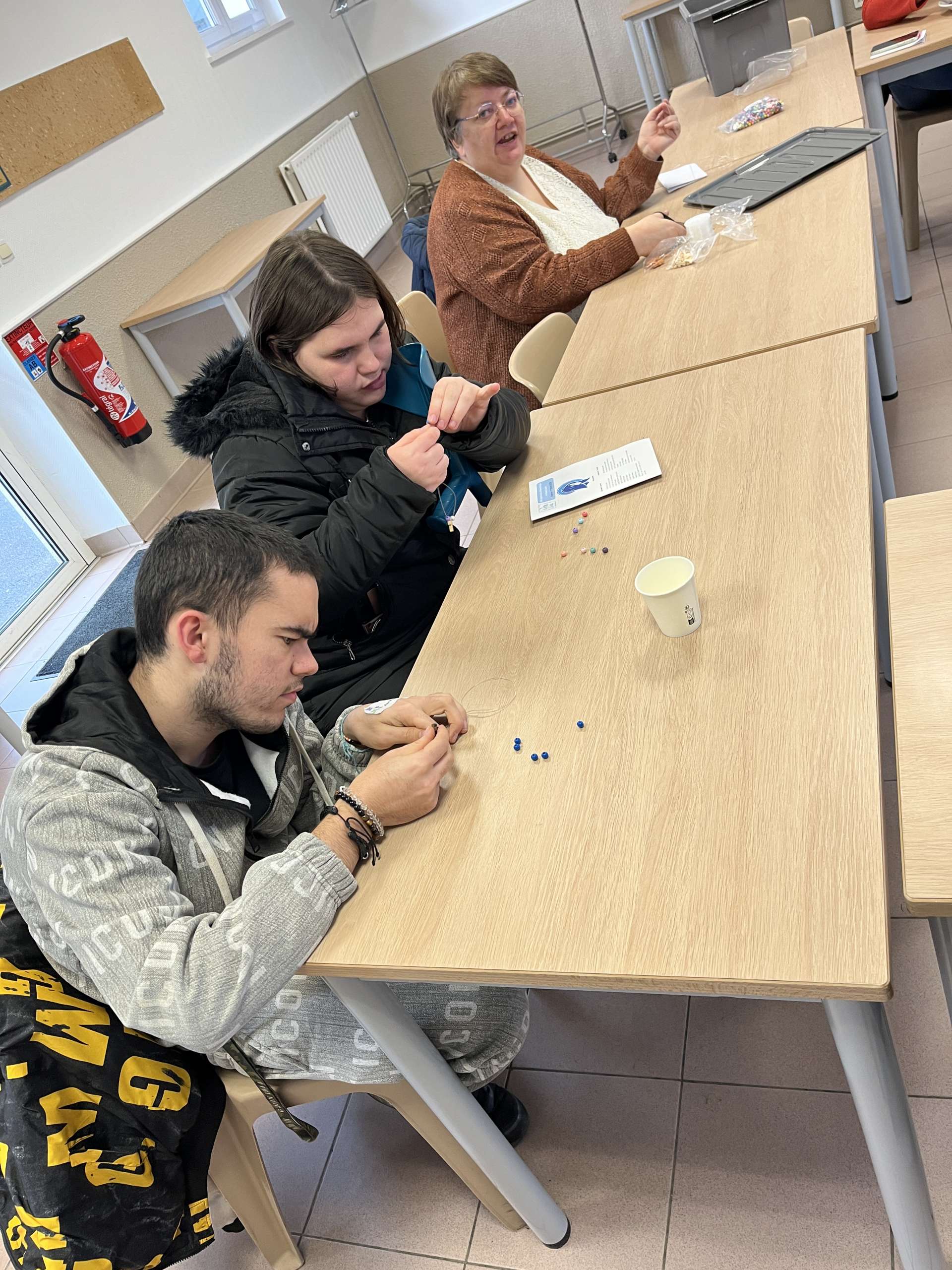 Lors des ateliers pour fabriquer un dizainier et une veilleuse pour la procession avec le chapelet du soir.